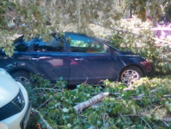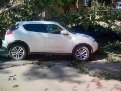 Как видно по выложенным фотографиям, стволы и тяжелые ветки тополей подмяли под себя «Тойоту» и «Форд Фокус». У первой машины повреждены капот и крыша. Сильнее всего досталось «Форду» - от удара у него серьезно деформирован кузов. У автомобиля смяло крышу, двери, капот, выбило стекла. Увесистые ветки упали на капот стоящего неподалеку японского кроссовера «Нисан Жук».