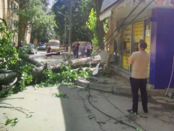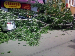 В Саратове упавшие деревья придавили несколько машин и поломали магазин
