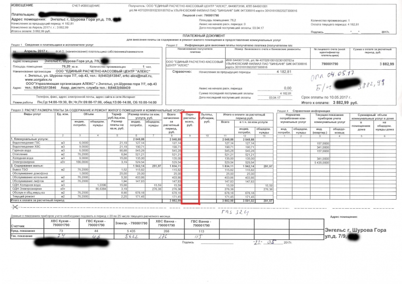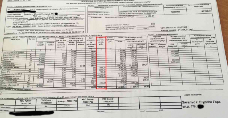 У энгельсской управляющей компании обнаружили платежки с перерасчетом и платежки без него