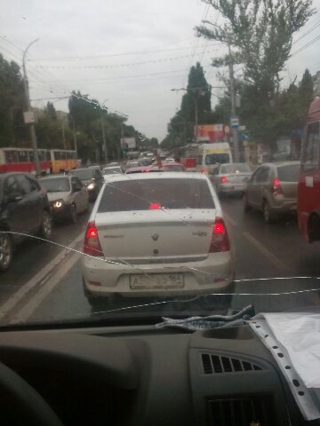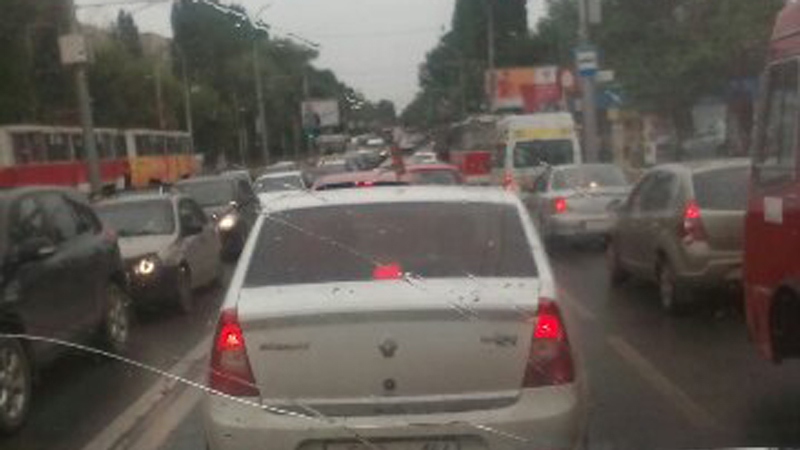 Ситуацию усугубил непрекращающийся уже несколько часов интенсивный дождь. В непогоду в Саратове традиционно осложняется ситуация на дорогах Саратова.