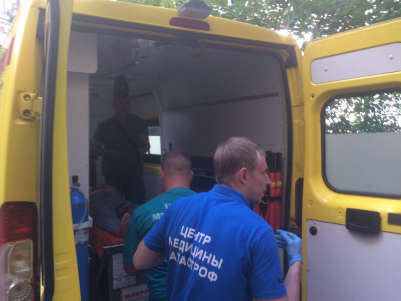 Женщину на носилках донесли в машину скорой помощи и госпитализировали.