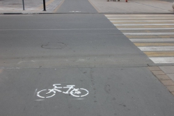 Знаки «Движение велосипедистов» были нанесены вчера вечером по всей длине улицы Волжской. На каждый квартал приходится по три знака, которые располагаются в начале пути, в середине и в конце перед пешеходным переходом. Днем на ней были замечены несколько велосипедистов. Некоторым из них приходилось выезжать на пешеходную часть из-за людей, которые игнорировали вновь появившиеся знаки.