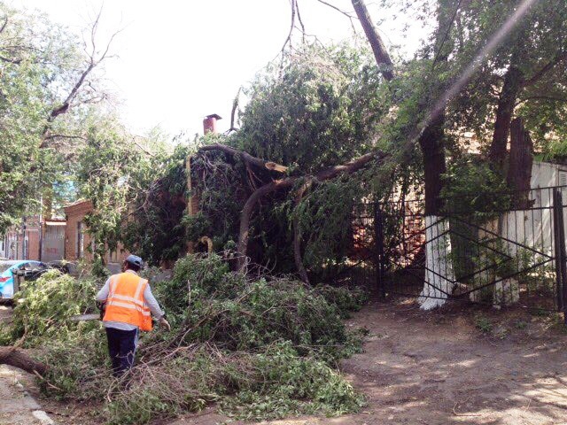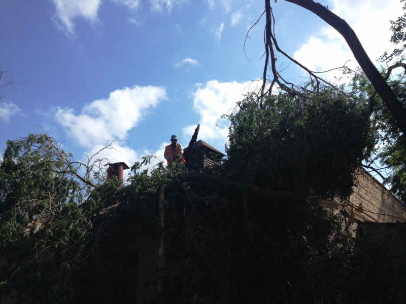 На Соляной распиливают дерево, обрушившееся на жилой дом