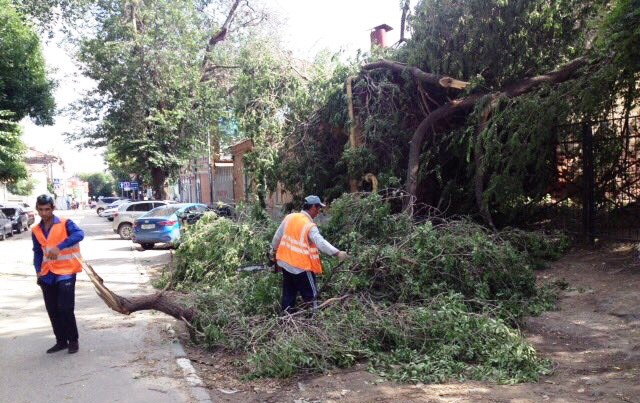 В Волжском районе Саратова устраняют последствия ночного разгула стихии, убирают поваленные деревья.