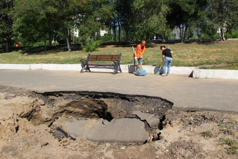 В Саратове около центра пляжных видов спорта образовался провал. Как сообщил с места корреспондент «Четвертой Власти», обрушился участок пешеходной дорожки, размеры ямы – 2 метра на 1,5 метра.