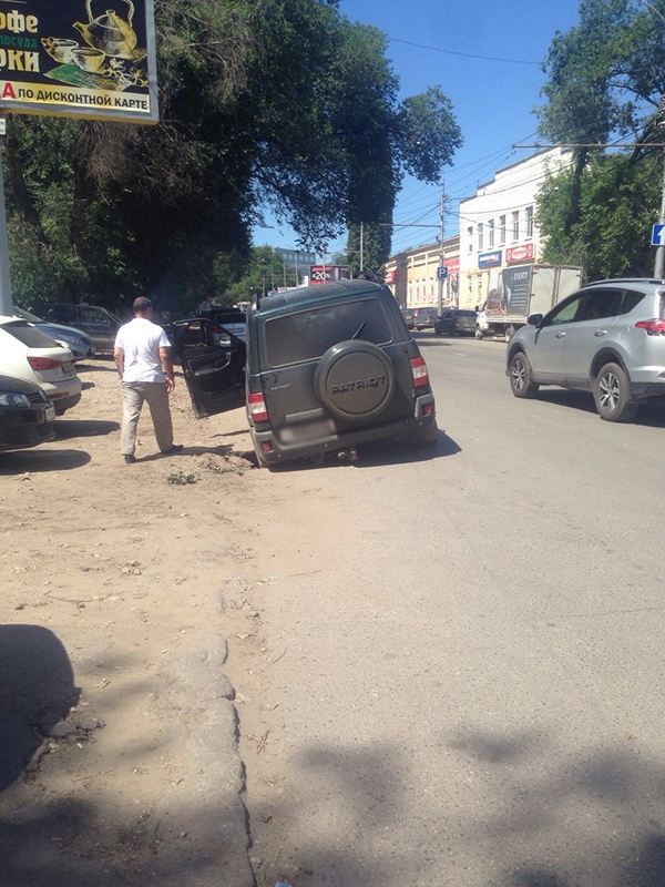Сегодня на улице Большой Садовой в Саратове автомобиль «УАЗ Патриот» провалился в дорожную яму. Об этом сообщают очевидцы в социальных сетях.