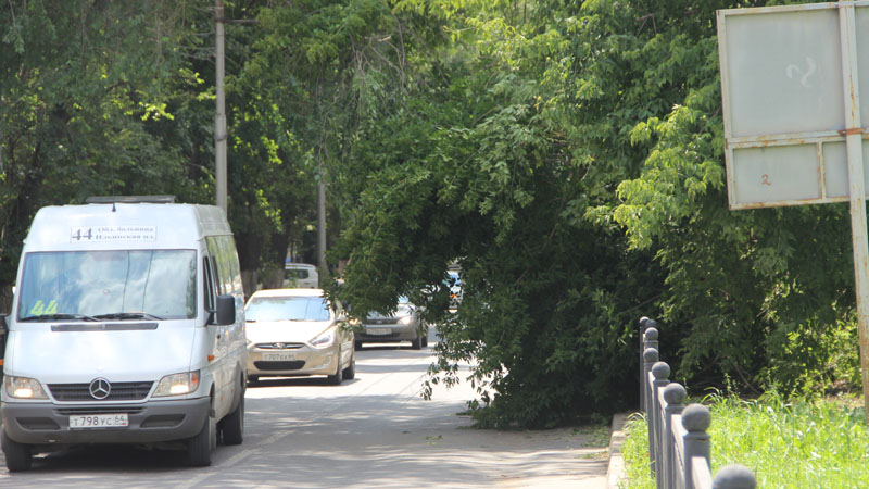 Свесившееся на дорогу дерево мешает автомобилистам – они вынуждены объезжать препятствие, что создает помехи в движении транспортного потока.