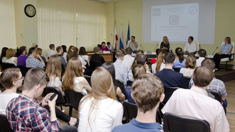 Со студентами саратовских вузов, прошедшими предварительный отбор и получившими сертификаты участия в программе, встретились бизнесмены: член совета региональной Торгово-промышленной палаты Владимир Шашко, член правления ТПП Борис Чернодед, руководитель проектов делового образования ТПП Нина Гришина, доцент кафедры МТиУК факультета нано- и биомедицинских технологий СГУ им. Чернышевского Светлана Климова, начальник отдела координации молодёжных программ министерства молодежной политики, спорта и туризма Саратовской области Андрей Абрашин.
