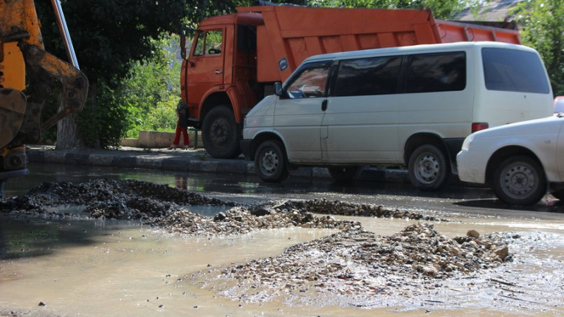 Рабочий на месте рассказал корреспонденту «4В», что прошел прорыв 700 мм трубы с холодной водой. Сейчас на месте работают сотрудники «Саратовводоканала». Они распилили асфальт специальной баровой машиной, погрузили его на самосвалы, затем приступили к откачиванию воды из ямы.