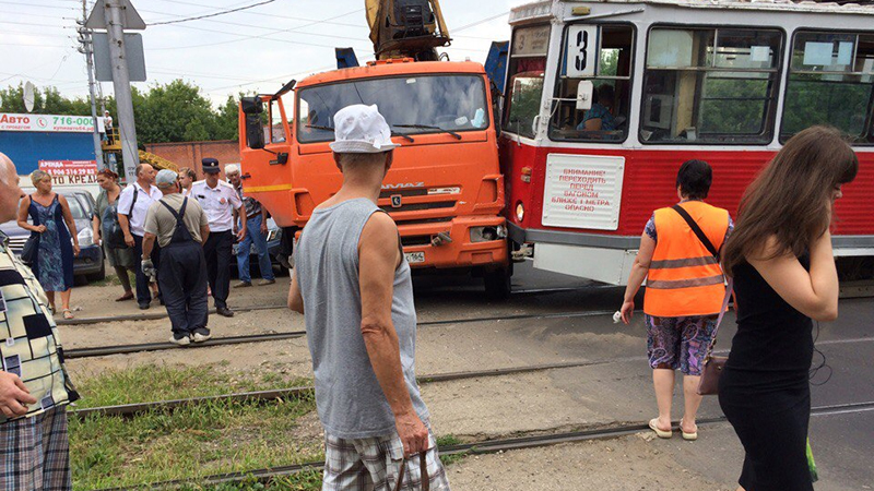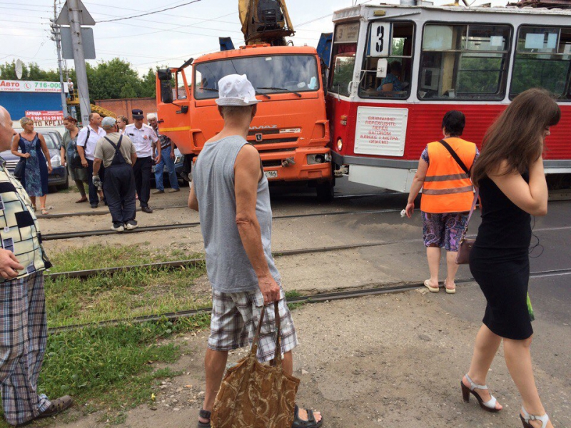 Возле Воскресенского кладбища трамвай врезался в «КамАЗ»
