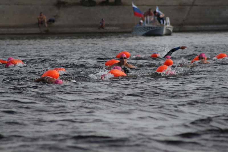 Финишировали участники заплыва у Ротонды на саратовском берегу, где их криками встречали несколько сотен зрителей. Протяженность дистанции составила 3540 метров. Известно, что не менее 3 человек снялись во время ее преодоления из-за усталости.