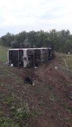 Несмотря на попытки водителя пассажирского транспорта увернуться от удара, лобовое столкновение произошло, и автобус вылетел в кювет, где и опрокинулся. В итоге 24-летний водитель «Калины» от полученных травм скончался на месте (у него фактически ампутировало голову). В автобусе пострадали около 16 человек, о госпитализированных пока точной информации нет, но предварительно их 6.