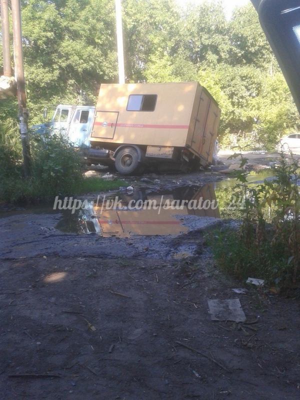 В Заводском районе коммунальщики целый день вытаскивали провалившуюся в раскоп машину