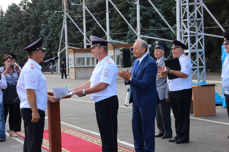 Валерий Радаев в выступлении рассказал, что автомобили, закупленные на средства федерального бюджета, вручаются лучшим работникам и подразделениям полиции.