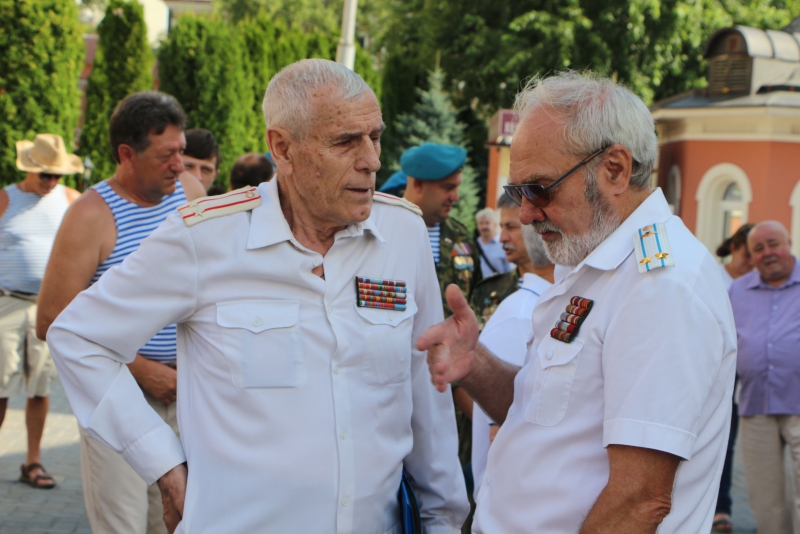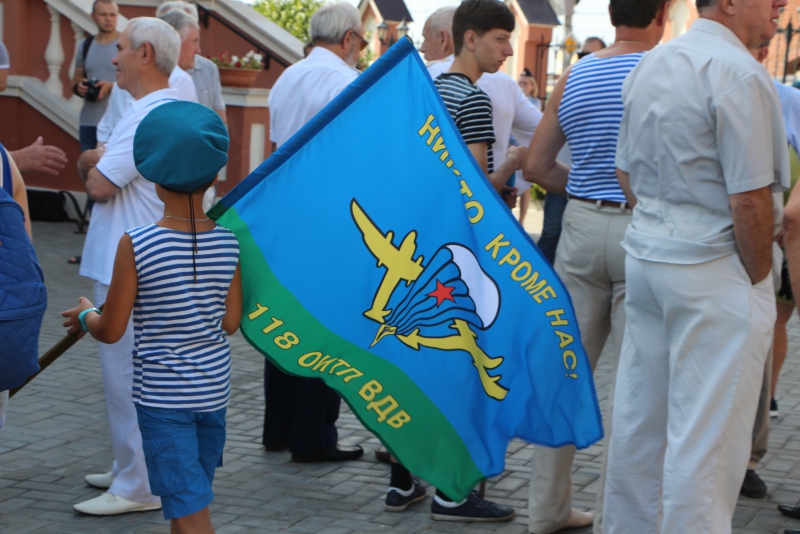 Корреспондент «Четвертой Власти» сообщает, что многие десантники пришли целыми семьями, дети также наряжены в тельняшки.