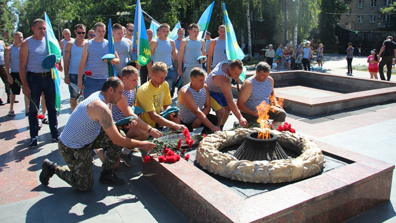 И здесь десантники отдали должное памяти своим собратьям, преклонив колени перед вечным огнем. Закончилось мероприятие общей памятной фотосессией.