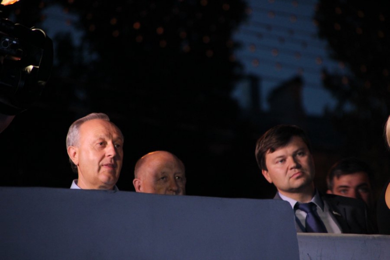 В 21.30 к нескольким сотням саратовцам с поздравительной речью вышел Валерий Радаев.