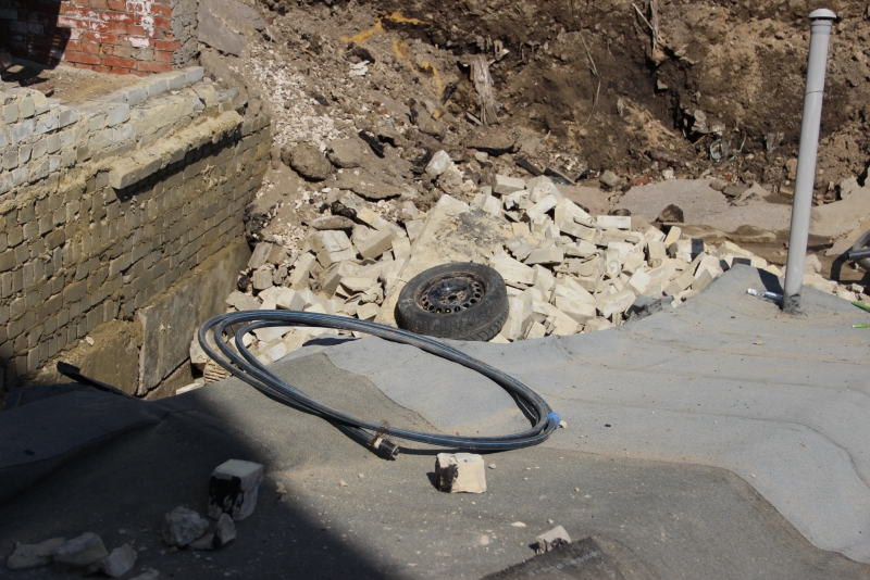 В 18.15 Алексею вновь позвонили и сообщили, что рухнула задняя стенка гаража, а потом и весь он провалился. Около 19.00 он приехал на место и увидел лишь груды развалин.