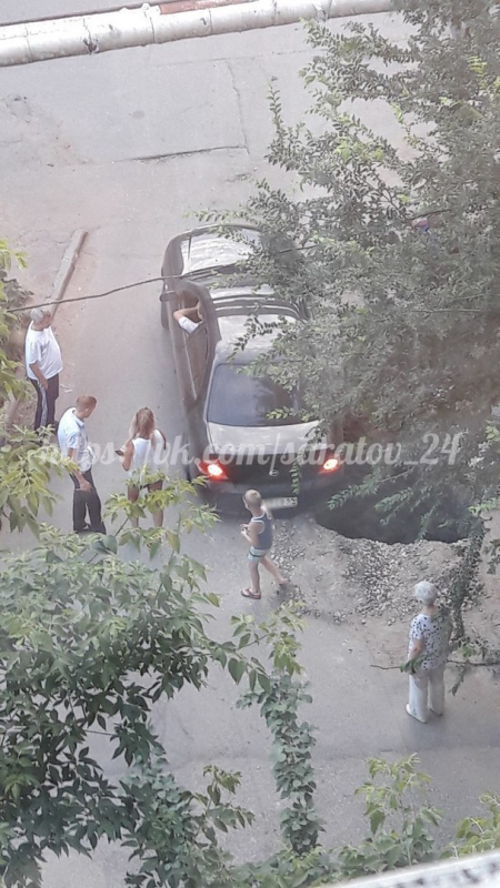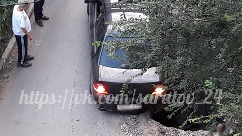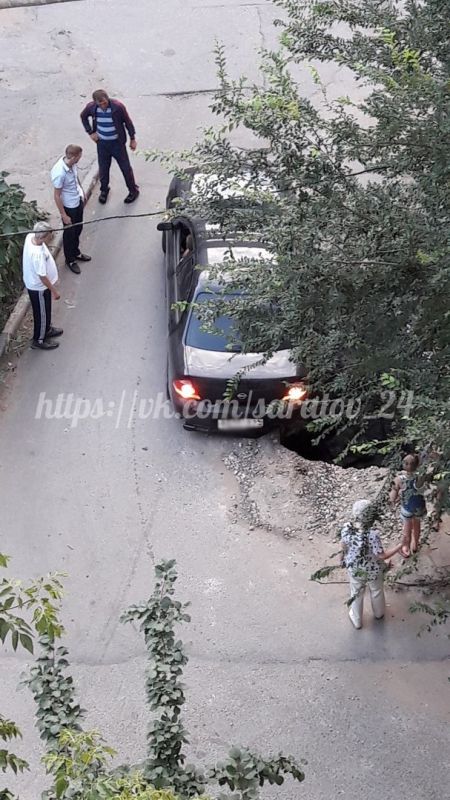 Вчера в Октябрьском районе Саратова провалился в глубокую яму автомобиль «Ниссан», его заднее колесо повисло в воздухе. Как сообщили очевидцы в соцсетях, за последнее время это не первое подобное происшествие.