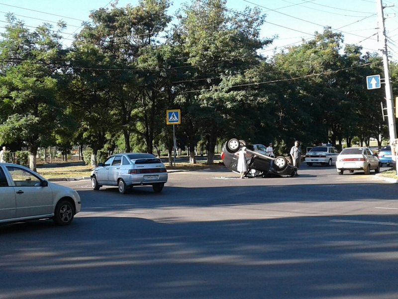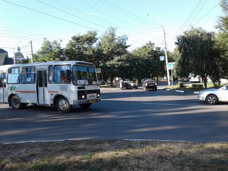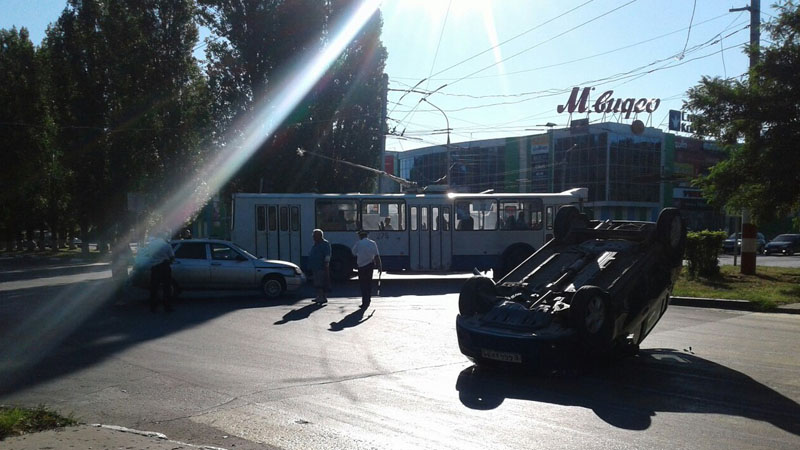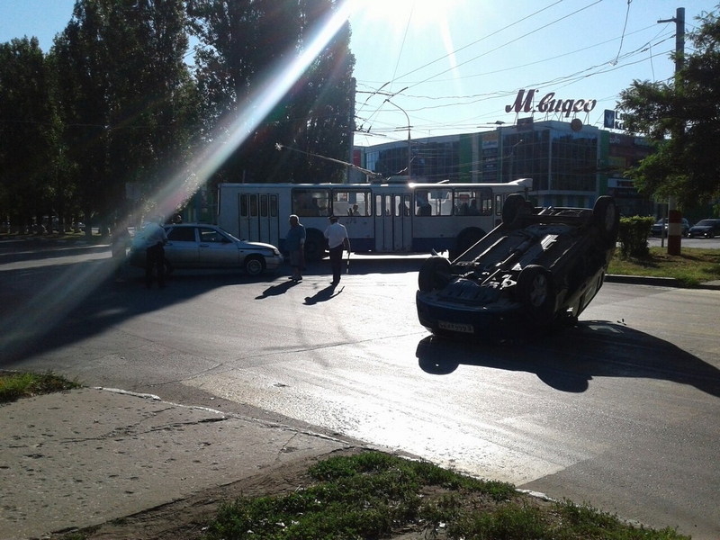 Сегодня утром в Балакове Саратовской области от столкновения с отечественным автомобилем иномарка перевернулась на крышу.