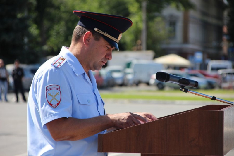 Руководители подразделений полиции проверили готовность личного состава, доложили о ней руководству. В ходе мероприятия на плацу был зачитан приказ о присвоении очередных специальных званий сотрудникам органов внутренних дел с вручением погон.