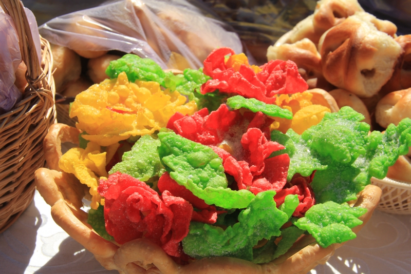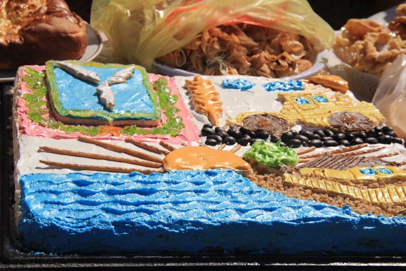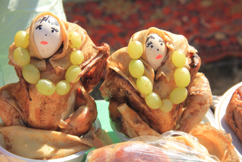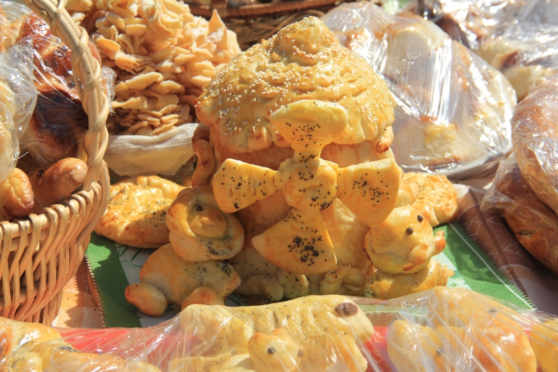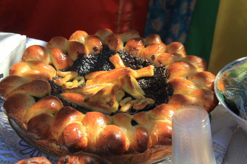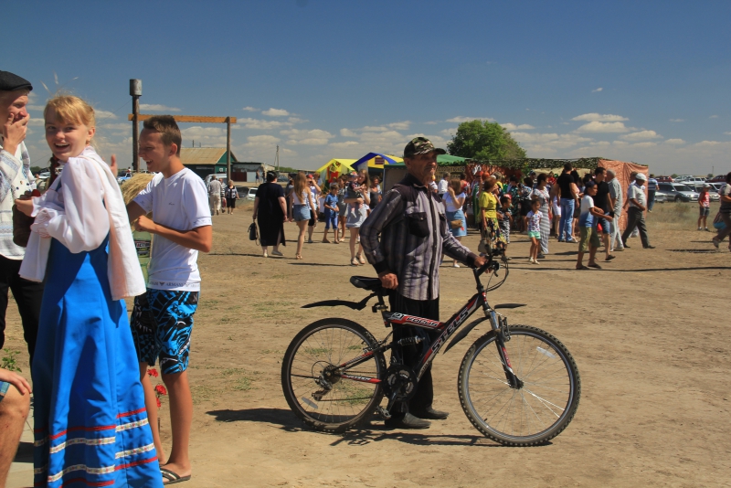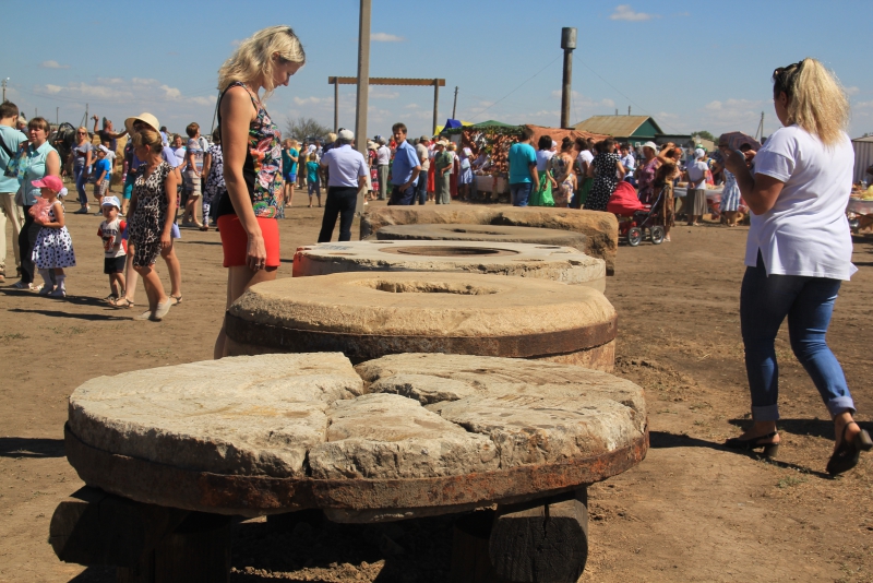 Вокруг мельницы организаторы устроили торговые ряды. В Питерский район приехали представители из соседних муниципалитетов – Новоузенского, Краснокутского районов – со своей выпечкой, поделками, сувенирами. Пирожки продавали от 5 до 10 рублей, тарелку тушеной баранины за 30 рублей. Правда, некоторые торгующие не общались с покупателями, ожидая прохода чиновников. Другие же продавали выпечку и поделки, не дожидаясь VIP-гостей.