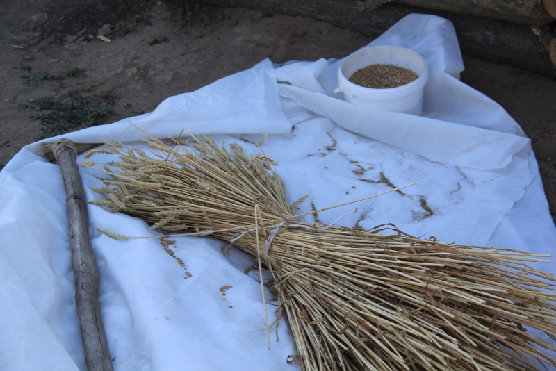 Сам комплекс состоит из мельницы, дома мельника, пяти найденных поблизости в яме жерновов, колодца да качелей. Есть еще и русская печка – как утверждают организаторы, действующая. Всех желающих угощали пышками из этой печки – ну очень вкусными.