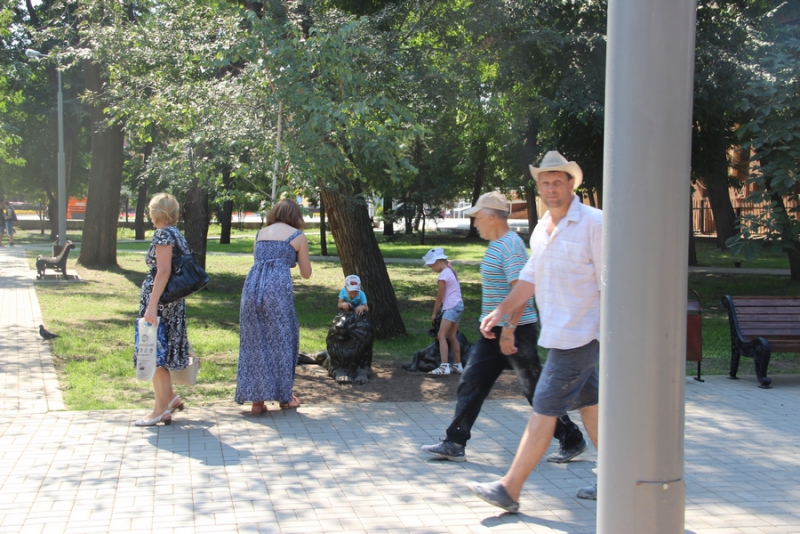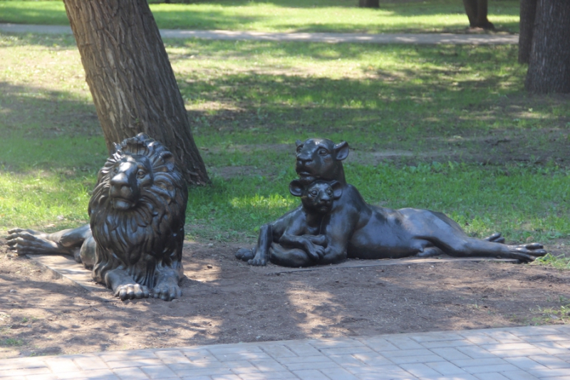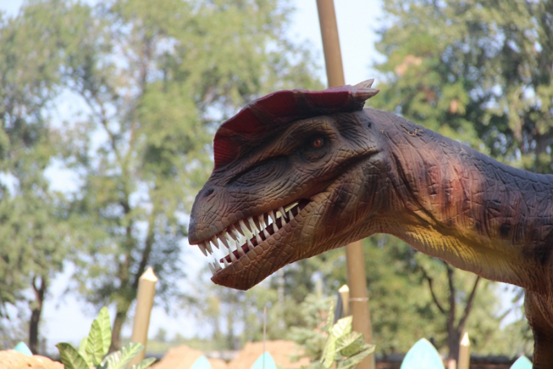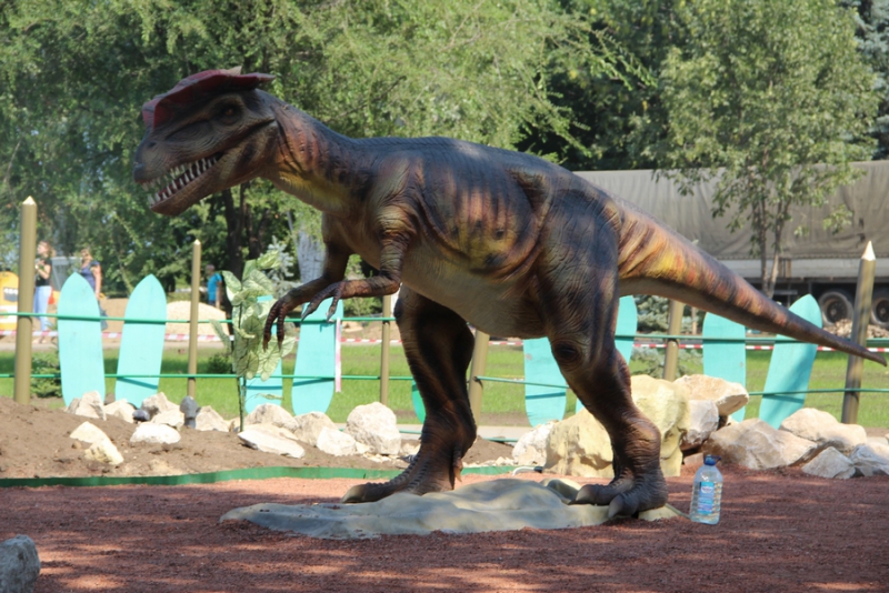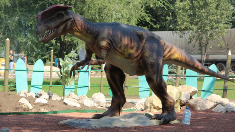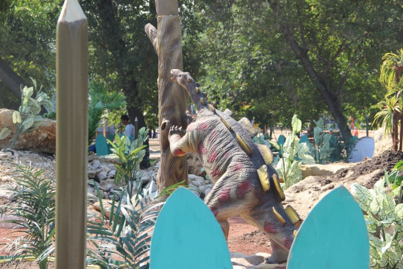 По словам журналиста, изюминкой парка можно считать установленную в его центре площадку с динозаврами. Она представляет собой фрагмент из жизни ископаемых ящеров, их здесь три, они оказались вместе на небольшом участке «гористой местности». Прохожие фотографируются на их фоне, особенно площадка нравится детям. При этом динозавры еще якобы издают некие звуки. Местные жители заверили журналиста, что слышали эти звуки.