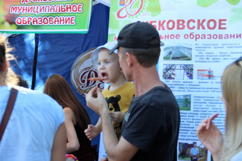 Дубковское муниципальное образование было представлено известным саратовским производителем колбас. Мясокомбинат «Дубки» угощал гостей праздника продукцией, снискавшей славу и уважение на лучших отечественных и зарубежных выставках. Каждый желающий мог попробовать знаменитую «Кремлёвскую» колбасу, которая получила золотую медаль за качество на последней выставке в Париже. А также ароматную сырокопчёную «Фаворит», ставшую победителем на выставке «Золотая осень» в Москве.