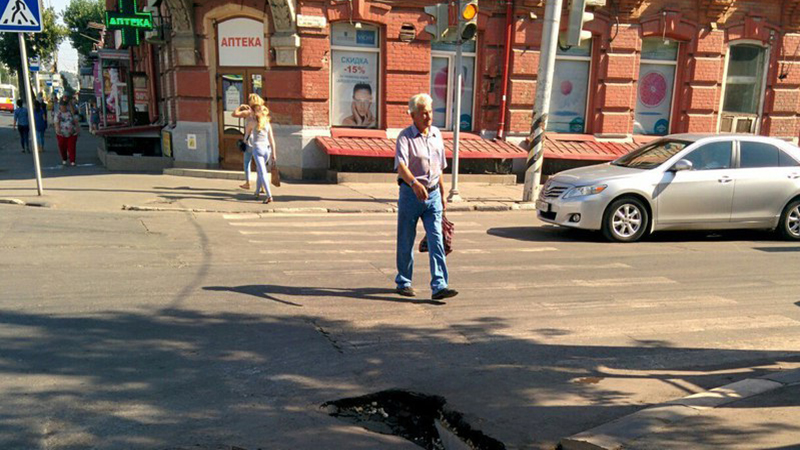 В центре Саратова возле пешеходного перехода образовался провал