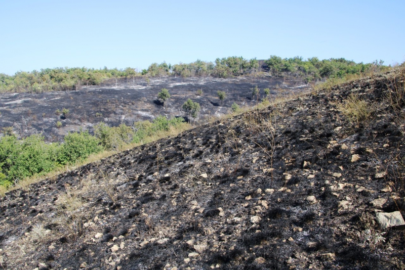 Природный пожар с тремя основными очагами бушевал в течение 5 дней на площади примерно 95 гектаров. Днем 20 августа на место тушения направили почти сотню человек, 15 единиц техники, так как огонь перекинулся на лес (низовой пожар), а также появилась угроза населенным пунктам (села Суворово, Меловое). Принятыми мерами опасность ликвидировали, уже к вечеру пожар локализовали. Однако полностью ликвидировать огонь удалось лишь 21 августа к 22.00.