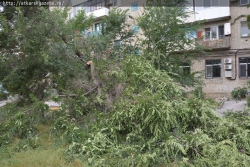 В городской электросети зарегистрировали несколько сообщений об обрывах электропроводов. На территории местной метеостанции порыв ветра свалил тополь. По нескольким улицам города также были повалены деревья.