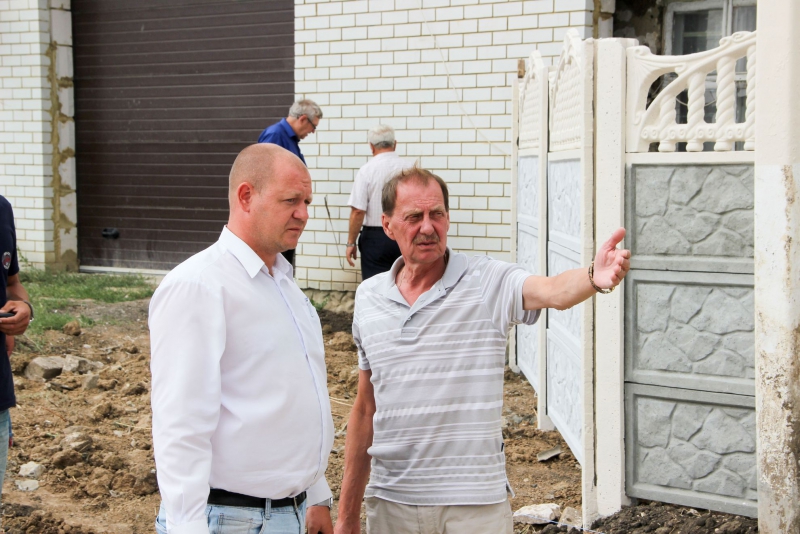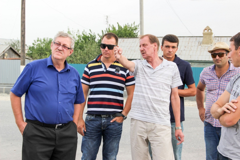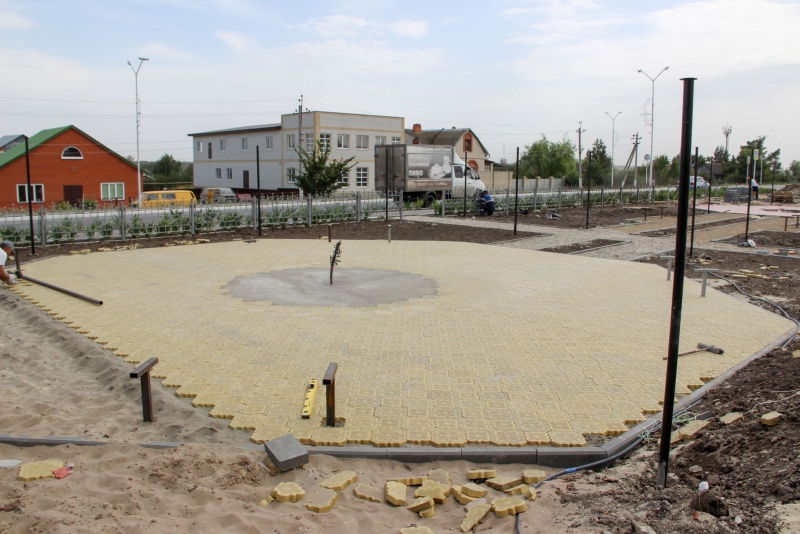 На объекте – генеральный директор подрядной организации «Трасса» А.Н. Яковлев и глава района П.В. Сурков. Дорожники и специалисты районной администрации вместе до мельчайших деталей, буквально до миллиметра определяют: как обустроить тротуары, как – зелёные зоны, как – подход к скверу от дороги, и как всё это совместить и вписать в уже имеющуюся старую жилую застройку посёлка. Причем – на перспективу. Вот явно прослеживается следующий этап реконструкции – от переулка мимо жилых домов параллельно Звездной и – на Кирова. Мешающий ремонту древесный сорняк и кустарник будет убран. Пока же предстоит спланировать территорию сквера, обустроить зону у самой стелы. В планах - посадка цветов, деревьев и кустарников хвойных пород на площади более 3000 квадратных метров!