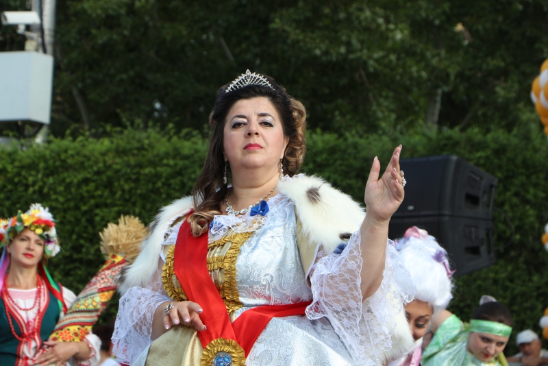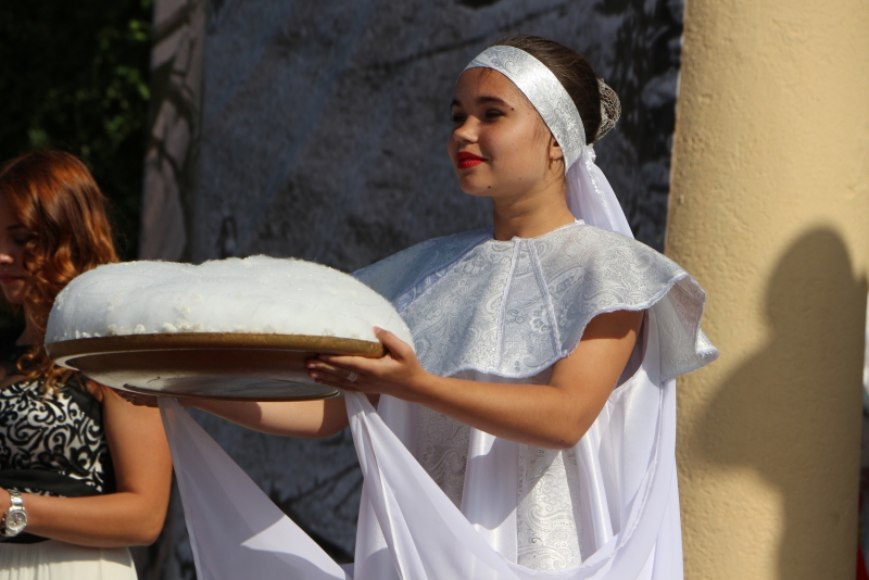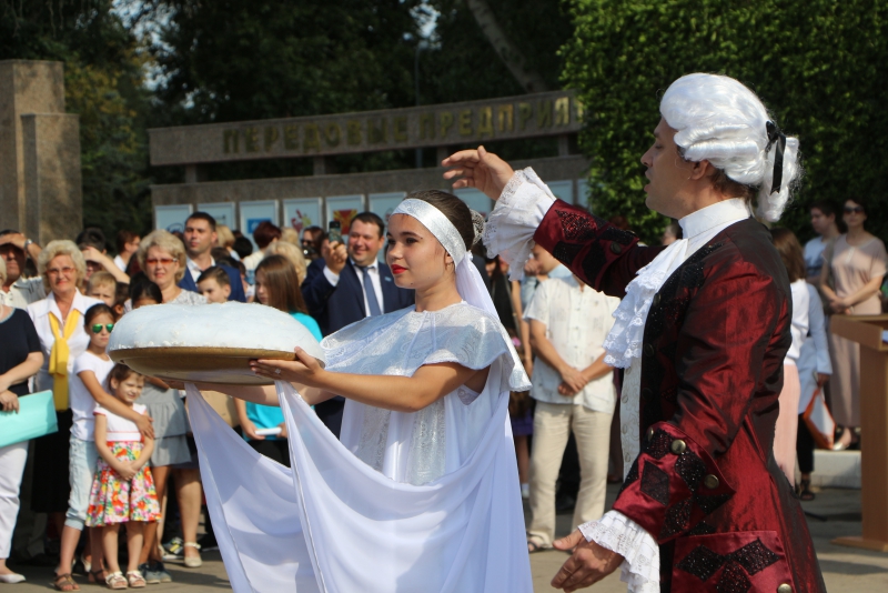У главного входа развернули импровизированную сцену, на которой артисты показали театрализованное представление об истории Энгельса.