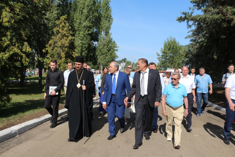 Во время прогулки Радаев, Стрелюхин и остальные также поучаствовали в церемонии открытия комплекса «Гаубица» на мемориале героям фронта и тыла, а также посетили выставку от местных застройщиков. Строители представили макеты высоток, которые могли бы украсить центр Энгельса. Под конец экскурсии врио губернатора побывал в национальных подворьях, в одном из них ему подарили мешочек соли.