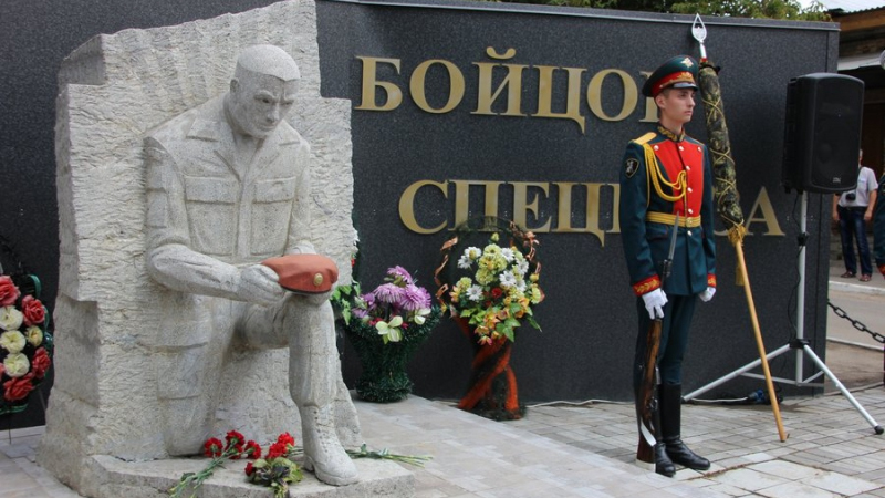 По окончанию торжественной части память погибших почтили минутой молчания и возложили венки и цветы к мемориалу «Памяти погибшим бойцам спецназа».