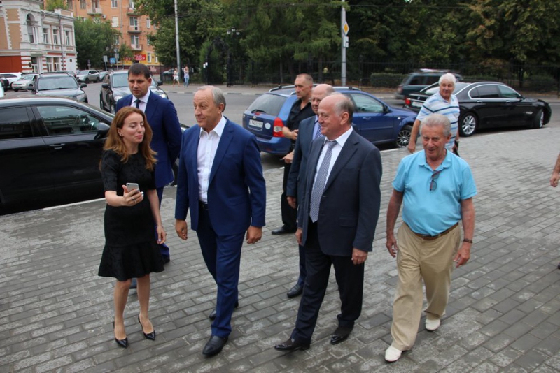 Вместе с ним в клуб приехали председатель Общественной палаты Саратовской области Александр Ландо, заместитель председателя правительства Иван Кузьмин, министр спорта Александр Абросимов.