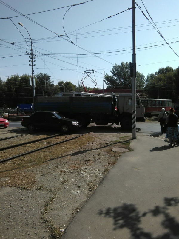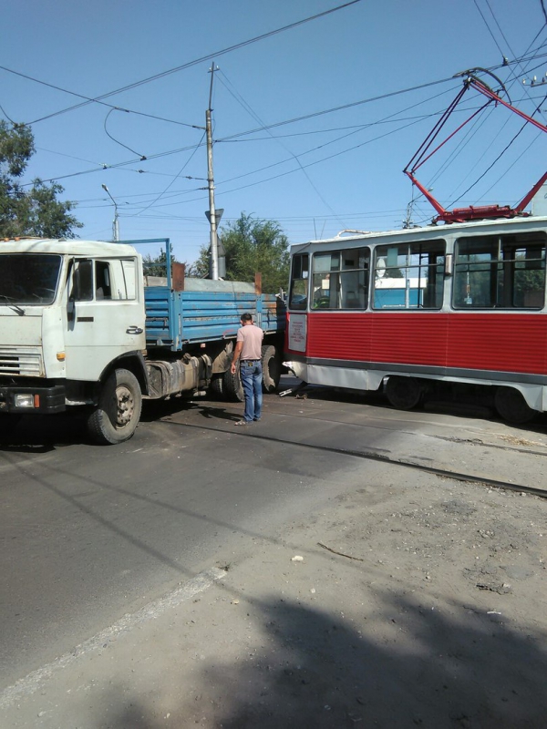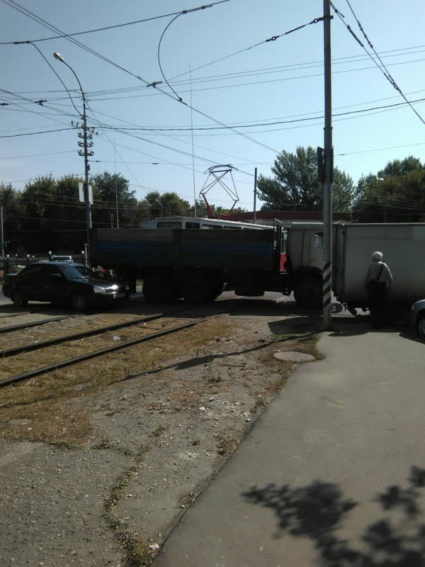 Движение трамваев №3 прекращено из-за ДТП с участием «КамАЗа»