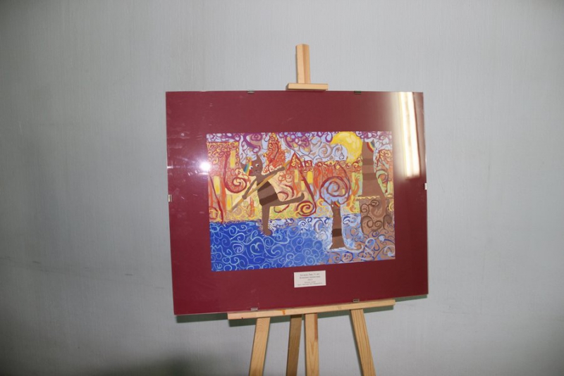 Сегодня здесь выставлено немного экспонатов - это 3 авангардистские картины, - и представлен проект музейного филиала. У входа расположилась выставка детских работ, изображающих котиков. Все экспонаты внимательно осмотрел глава региона.