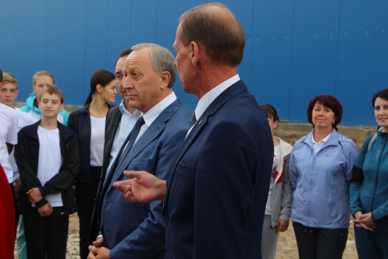 У здания Радаева встретили местные спортсмены. Они рассказали, что очень ждут современный комплекс, чтобы проводить там тренировки.