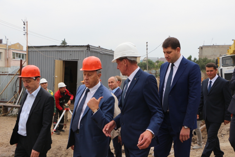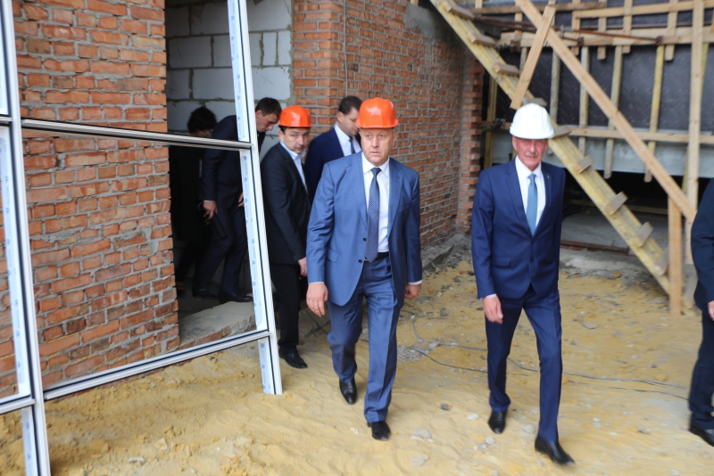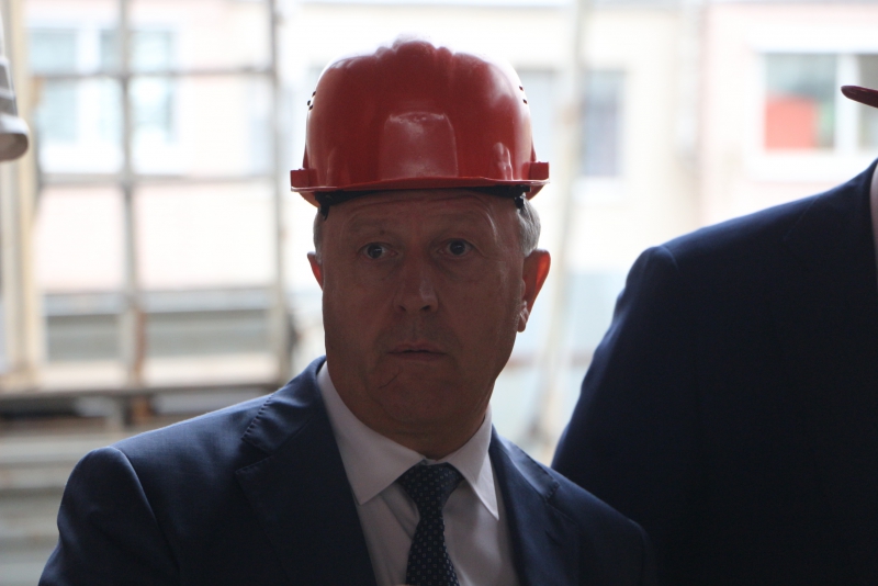 Затем врио губернатора в сопровождении чиновников и подрядчиков посетил стройплощадку. Выйдя из здания, он сообщил, что остался доволен темпами работ.