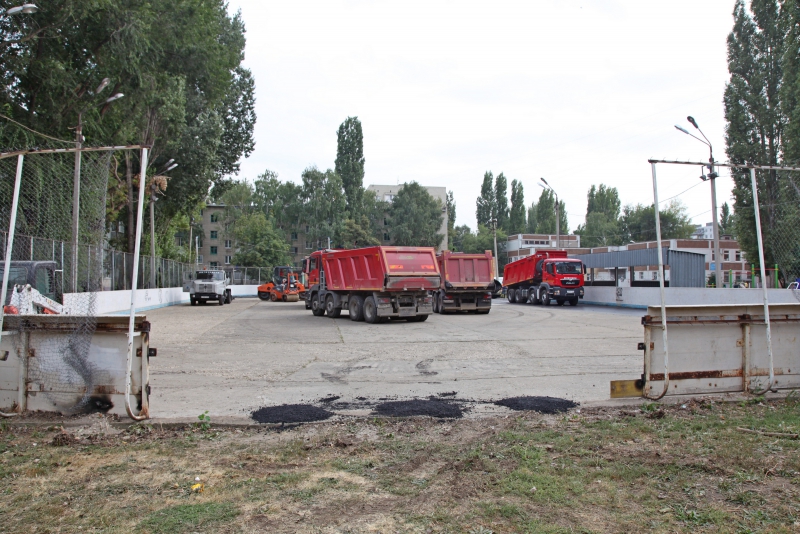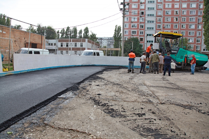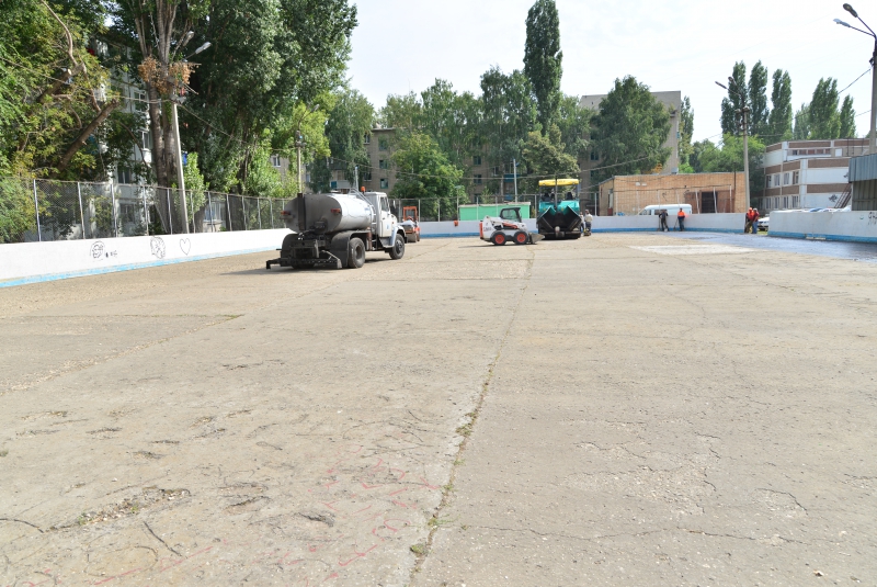 В Балакове ремонтируют асфальтовое покрытие в хоккейной коробке