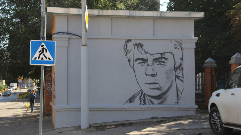 В центре Саратова появилось новое граффити. Оно изображает известного российского артиста Сергея Бодрова, известного зрителям по фильмам «Брат» и «Брат-2».