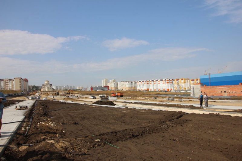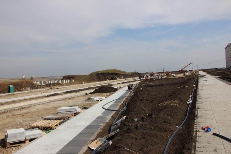 Сейчас на бульваре ведутся земляные работы. Начали устанавливать бордюрный камень. На объекте работы ведутся в круглосуточном режиме. Задействованы около 300 человек.