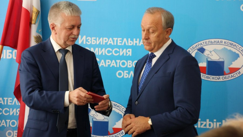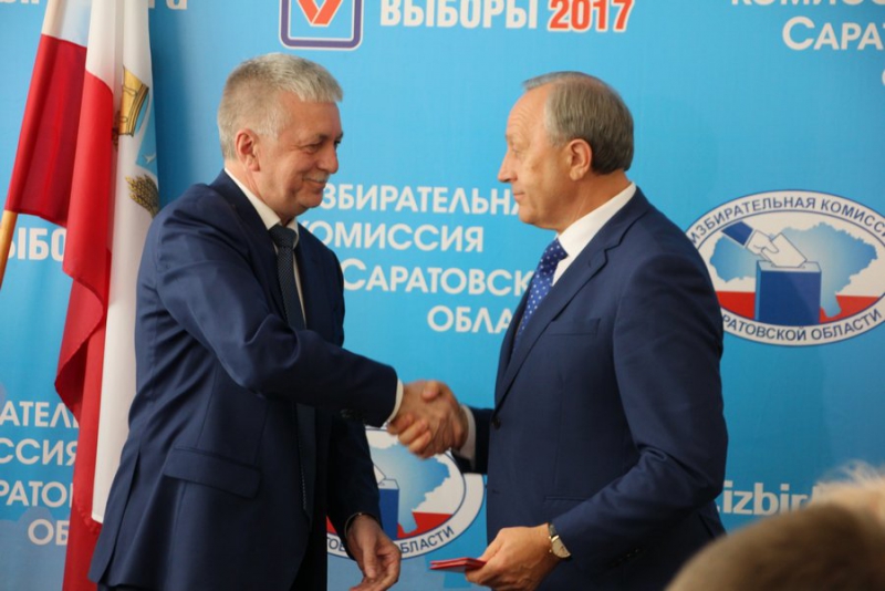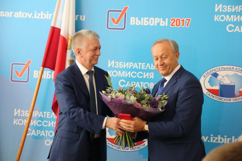 Сегодня Валерий Радаев получил удостоверение об избрании губернатором Саратовской области. Документ о регистрации избранного губернатора ему вручил председатель избирательной комиссии региона Павел Точилкин.