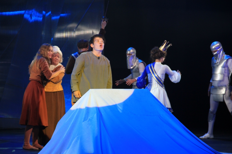 Юрий Ошеров поставил музыкальную сказку, в ней главные персонажи поют и танцуют. Музыкальным оформлением спектакля занимался композитор Сергей Ткачев, хореографией – актер Алексей Кривега (он же сыграл Белого).