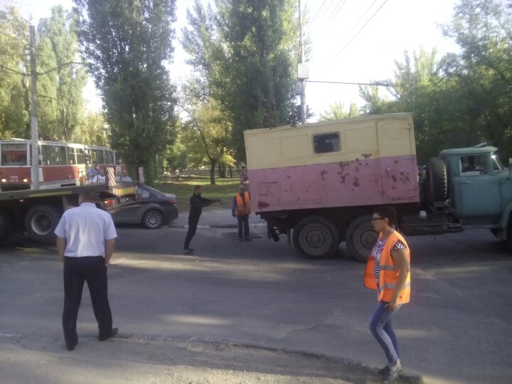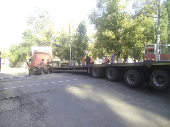 Очевидцы рассказали «4В», что около часа назад грузовой транспорт с госномерами Санкт-Петербурга намеревался попасть на одно из предприятий в районе 2-й Дачной, однако свернул не на ту улицу. Пересекая трамвайные пути, 16-метровая платформа застряла на рельсах. Попытки вызволить грузовик своими силами лишь приводили к тому, что поднималась кабина. В итоге длинномер убрал с путей прибывший на место «ЗиЛ» ремонтной бригады.