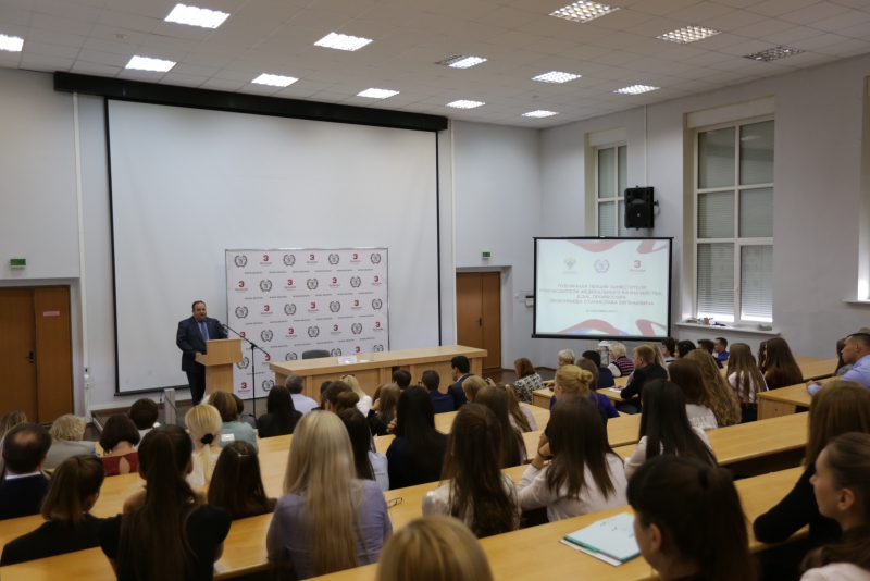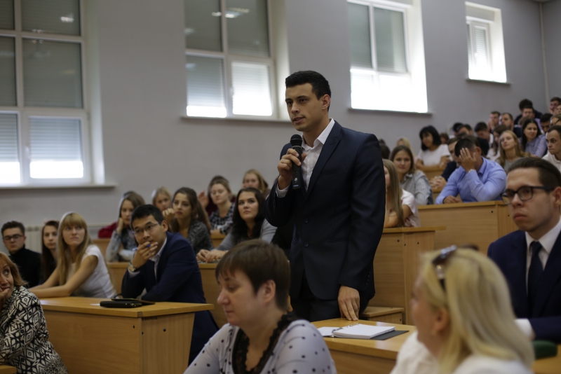 Сегодня, 22 сентября 2017 года, для студентов и преподавателей Саратовского социально-экономического института РЭУ им. Г.В. Плеханова провел открытую лекцию заместитель руководителя Федерального казначейства, действительный государственный советник РФ 2 класса, Заслуженный экономист РФ, д.э.н., профессор Станислав Прокофьев.