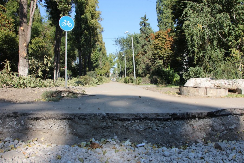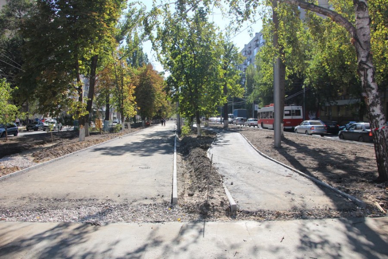 От улицы Вавилова до Советской, том числе около памятника Н.В. Цицину, уже сделали бетонную стяжку, уложили асфальт на пешеходной и велосипедной дорожке. Однако на асфальте есть следы от техники и в некоторых местах видно вышелушивание асфальта. Возможно, что это только первый слой покрытия. Местами уже видны зоны, где будут располагаться шахматные столы, лавочки, арт-объекты.
