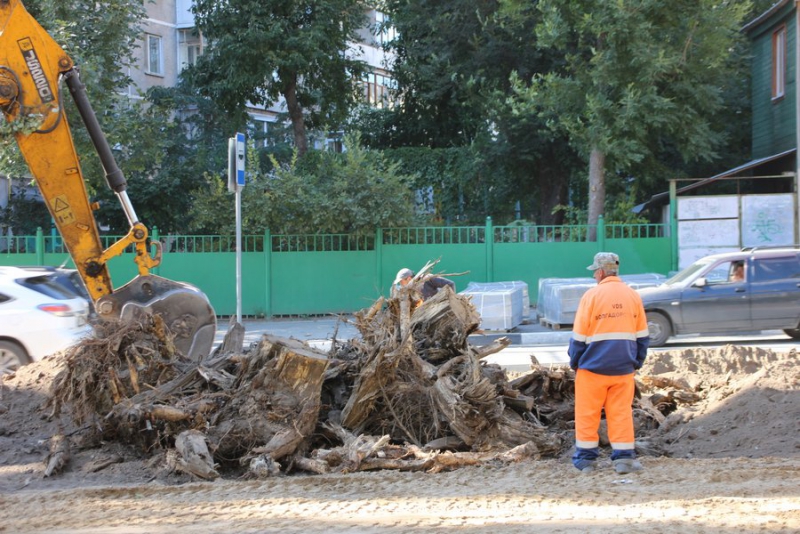 Напомним, реконструкция сквера началась 23 августа от улицы Вавилова до сквера Борцам революции 1905 года. Сейчас на протяжении всей пешеходной зоны опилены деревья, снят асфальт, убраны и вновь поставлены бордюры.